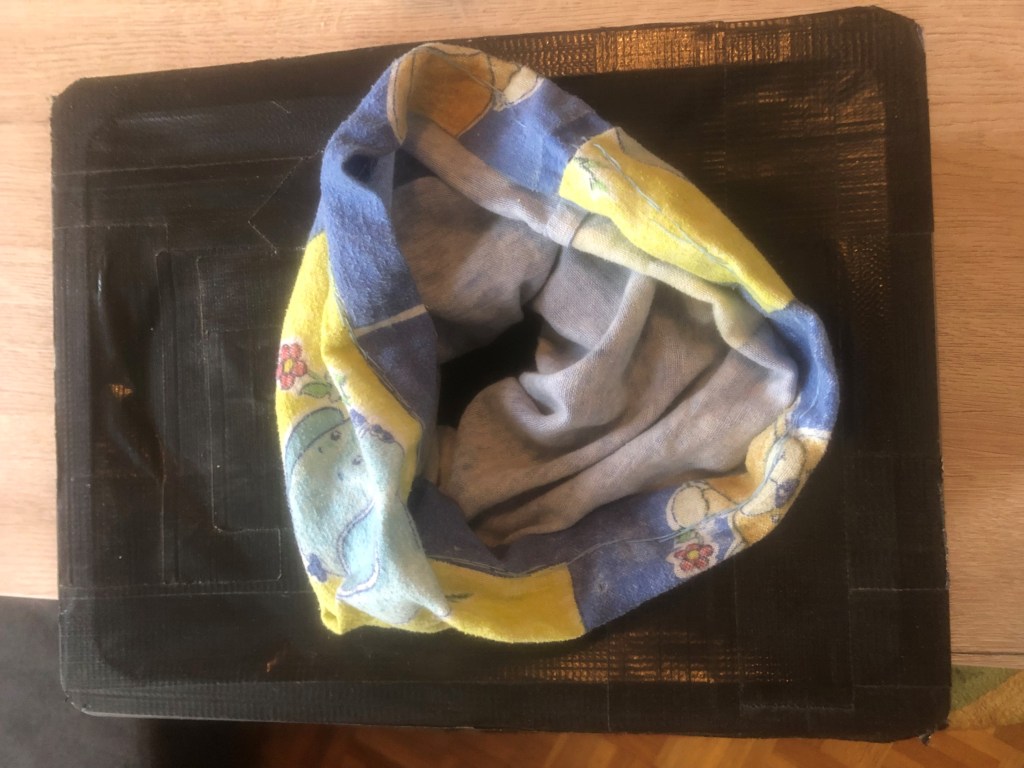 Most of the games can be used for objects or picture cards, but kids love to hold things in their hands. Uniquely with objects are games where they try to guess what it is by feel. You can either put the objects in a bag or create a box. I took a plastic storage box (I used black, but any color will do as long as you cannot see through it), cut a hole in the top and duct-taped an old pillowcase cut into a tube onto the top. Kids can then reach in and guess what they have in their hand. Another option is to blindfold the child and put the object in his hand.