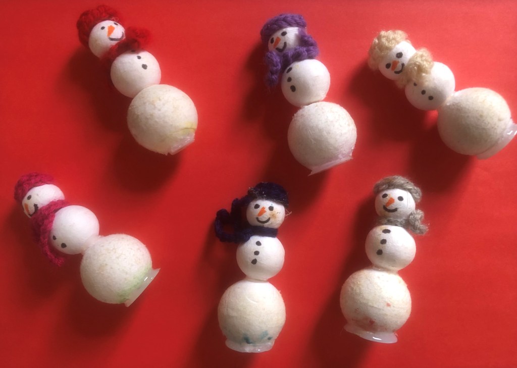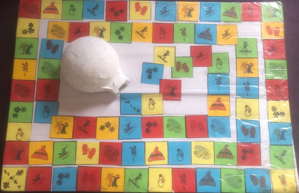 - You could really use any playing pieces. I made snowmen using craft balls I found at a local store. These are held together with toothpicks and hot glue. I drew faces on them and crocheted different color hats and scarves. Then I used a big glob of hot glue to attach them to a plastic sheet. This can be peeled off and the snowman has a flat base.